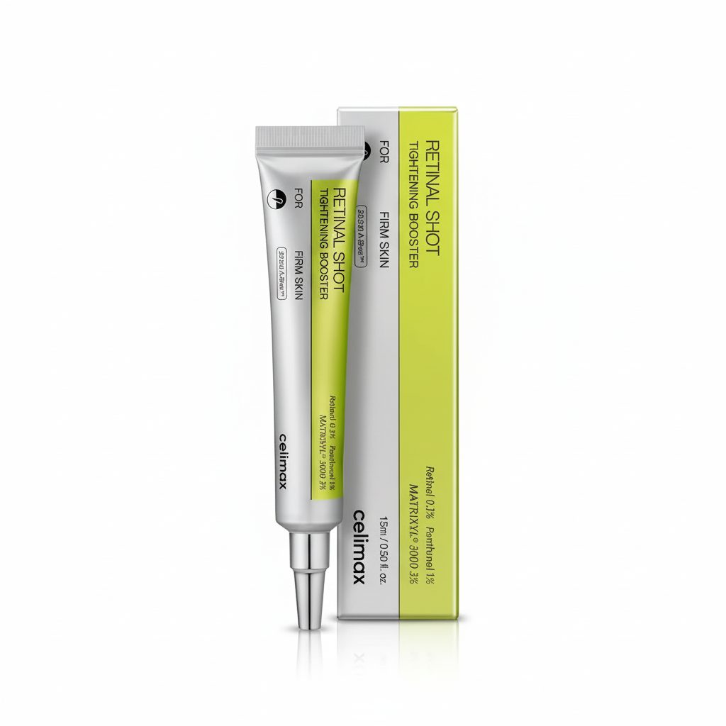 The Celimax Retinal Shot Tightening Booster is a potent anti-aging treatment formulated to target skin firmness and elasticity. This booster contains a powerful blend of active ingredients, including Retinal 0.1%, Panthenol 1%, and Matrixyl . Retinal (Retinaldehyde) is a highly effective form of Vitamin A that helps minimize the appearance of fine lines and wrinkles. Panthenol provides soothing and hydrating benefits, while Matrixyl is a peptide blend known for its firming and skin-restoring properties. It is specifically designed For Firm Skin, helping to create a tighter, smoother, and more youthful-looking complexion.