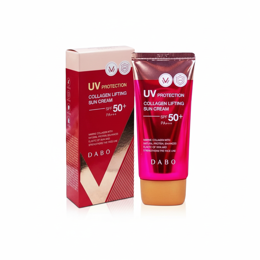 Protect and firm your skin with the Dabo UV Protection Collagen Lifting Sun Cream. This advanced sun cream offers high-level sun protection with SPF 50+ PA+++, shielding your skin from harmful UVA and UVB rays that cause premature aging and sun damage.